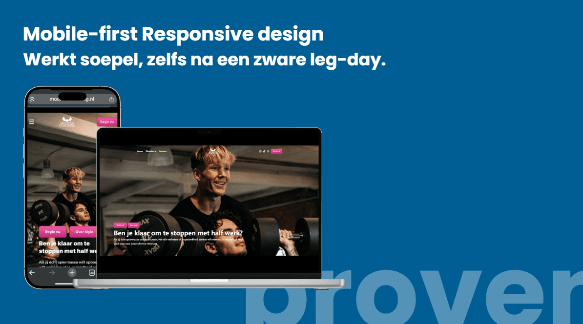 De website van Moorencoaching is opgebouwd rond een mobile-first aanpak. De meeste bezoekers zoeken via hun telefoon een personal trainer, dus de mobiele ervaring moest perfect zijn. We hebben de lay-out, knoppen en navigatie hier volledig op afgestemd, waardoor alles snel en intuïtief werkt.